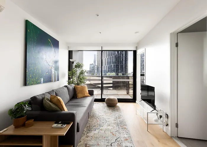 The 80 m² Free Parking - 2 Bed 2 Bathroom Modern Apartment Melbourne is located 1.8 km from Flinders Street train station and about a 5-minute walk from Crown Conference Centre Event Venue. Welcoming guests with a sauna and an indoor pool, this spacious apartment lies not far from Crown Melbourne Casino.